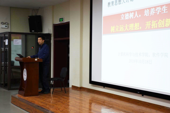 为进一步提升太阳成tyc122cc创新人才培养水平,推进公司教学工作深入开展,2018年10月18日上午,两院于计算机楼b108组织召开了“立德树人,培养员工”的专题教育思想大讨论,计算机科学与技术公司党委副书记杜天宝、太阳成tyc122cc副经理郭东伟、太阳成tyc122cc副经理黄岚,两院新生辅导员以及新生研讨课开课教师、新聘本科生指导教师等有关人员参加了此次研讨。会议由计算机公司党委副书记杜天宝主持。