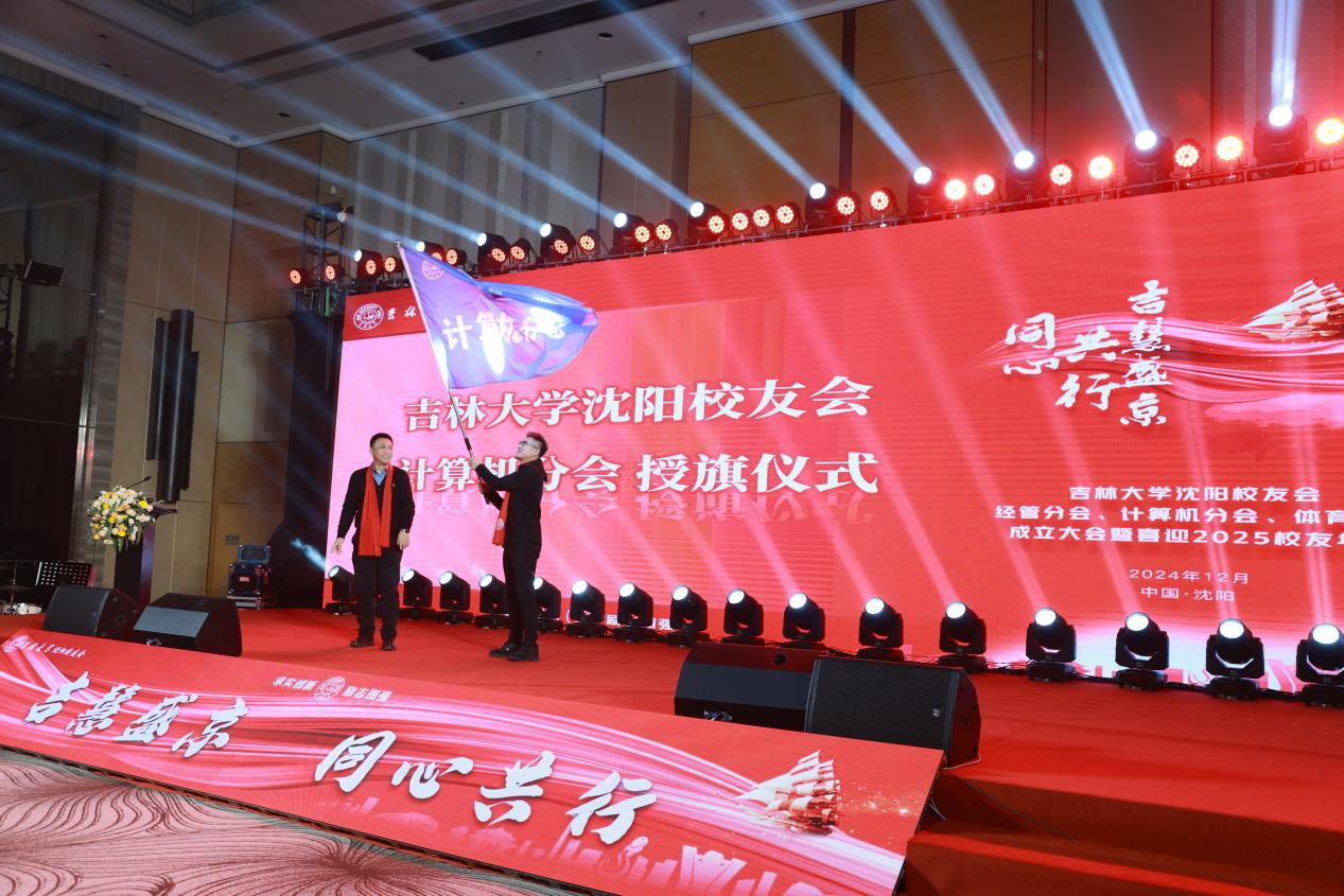 太阳成tyc122cc员工和基金工作办公室副主任、太阳成tyc122cc员工会副秘书长尹彪,为沈阳员工会计算机分会授旗。这面旗帜,不仅承载着母校对员工们的殷切期望,也标志着计算机分会正式扬帆起航,开启新的征程。