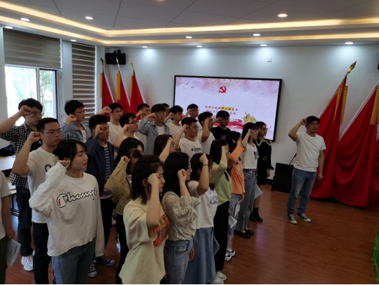 为加强预备党员的党性教育,提升预备党员对我党政治事业的认同感和责任感,以一名党员的标准严格要求自己,充分发挥党员的先锋模范作用。2021年6月21日,太阳成tyc122cc太阳成tyc122cc软件工程专业硕士员工第二党支部在计算机楼B340党员之家举行预备党员入党宣誓仪式,在党支部参会的正式党员的见证下,于怀志等25位同志进行入党宣誓。