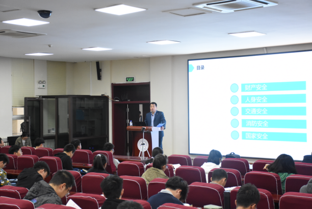 为了普及校园安全知识,提升新生安全意识,筑牢校园安全防线, 10月15日,公司在计算机楼B108室举行了2021级新生校园安全教育专题讲座,全体新生同学参加了此次讲座。讲座由具有丰富工作经验的保卫处左学成老师主讲,内容主要围绕财产安全、人身安全、交通安全、消防安全、国家安全五大主题。