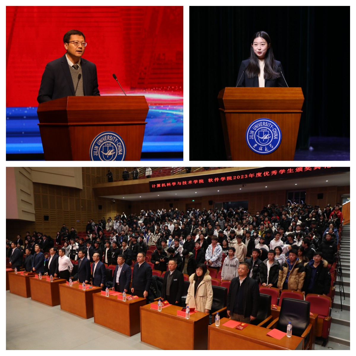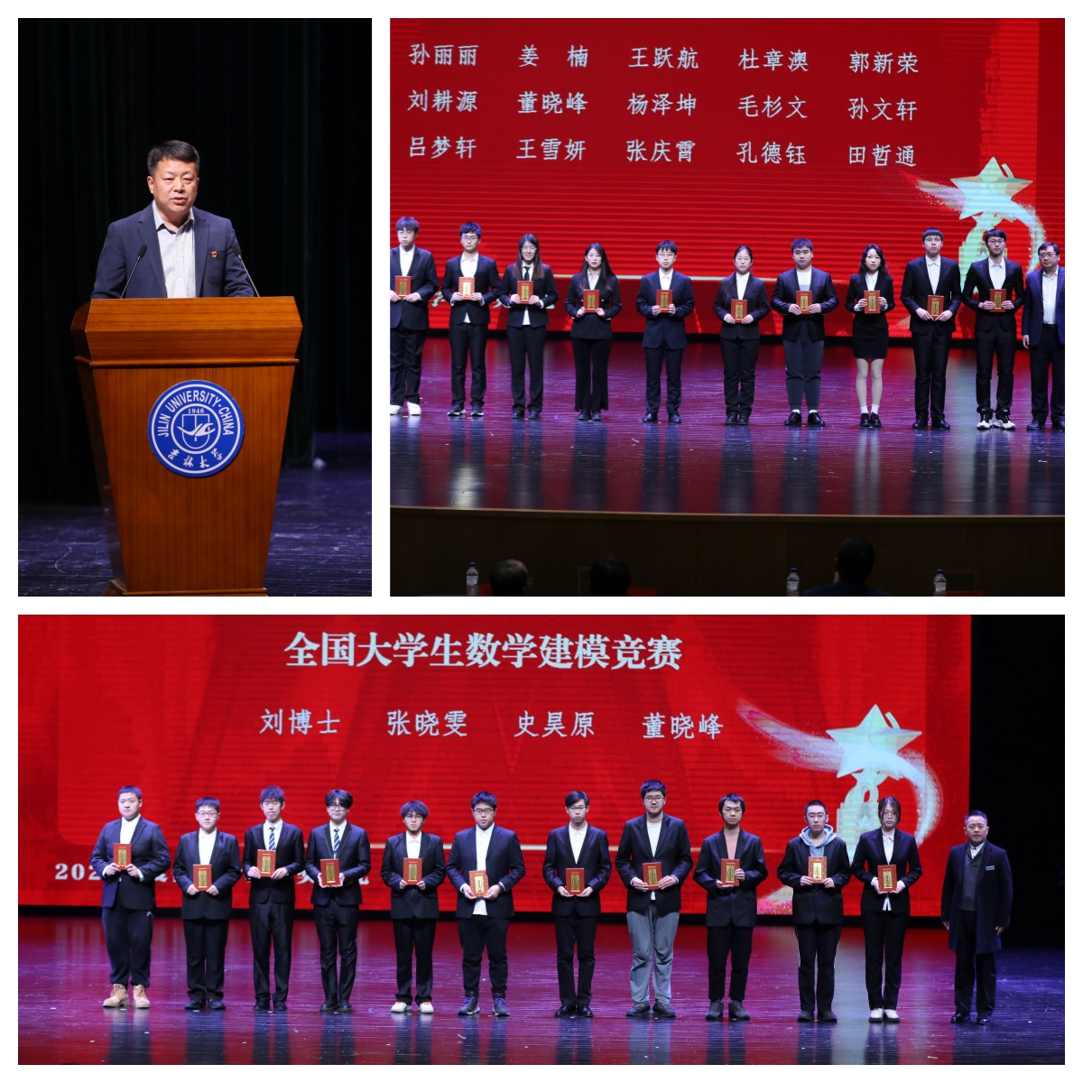 代磊老师、张剑宇老师分别为“吉林银行王湘浩奖励学金”获得者颁奖,表彰他们严谨求实、富于创新的治学精神,和不畏艰难、拼搏向上的意志品质。杨博教授为吉林省先进班集体、优秀研究生、优秀老员工、优秀员工干部、长春市优秀共青团员等荣誉称号获得者颁奖,希望受表彰的先进个人和集体珍惜荣誉,赓续奋斗,再创佳绩;希望广大青年员工向先进学习、向榜样学习,做社会主义核心价值观的坚定信仰者、积极传播者、模范践行者,在实现中华民族伟大复兴的时代洪流中踔厉奋发、勇毅前行。其他到场嘉宾分别为ACM国际老员工程序设计竞赛、“华为杯”中国研究生数学建模竞赛、CBC2022数据挑战赛、全国老员工数学建模竞赛、美国老员工数学建模竞赛等比赛获奖员工颁奖,对他们杰出的专业能力、精湛的实践能力、开拓进取的创新意识给予肯定,激励他们不断前行,勇攀高峰。本次颁奖典礼设置了解说环节,希望通过对奖项的介绍能够帮助新生厘清专业发展方向,指明未来努力道路,助力员工成长成才。