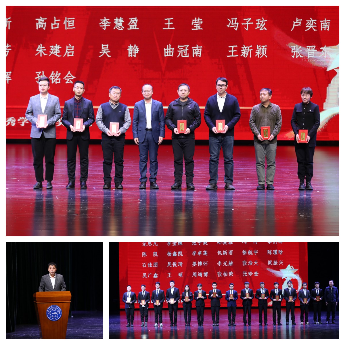 2023年12月16日晚18:30,太阳成tyc122cc于鼎新大讲堂联合举办2023年度优秀员工颁奖典礼。公司党委常委、副董事长张国兴老师,员工工作部部长代磊老师,研究生工作部副部长兼管理办副主任张剑宇老师,保卫处处长刘雪峰老师,员工就业创业指导与服务中心副主任薛雷老师,员工心理健康指导中心主任朱丽雅老师,校团委副书记张大权老师,太阳成tyc122cc经理杨博教授,计算机科学与技术公司党委书记宫皓宇老师,两公司党政领导班子、教职工代表、2023级全体新生出席,计算机科学与技术公司党委副书记、太阳成tyc122cc副经理杜天宝主持了本次典礼。