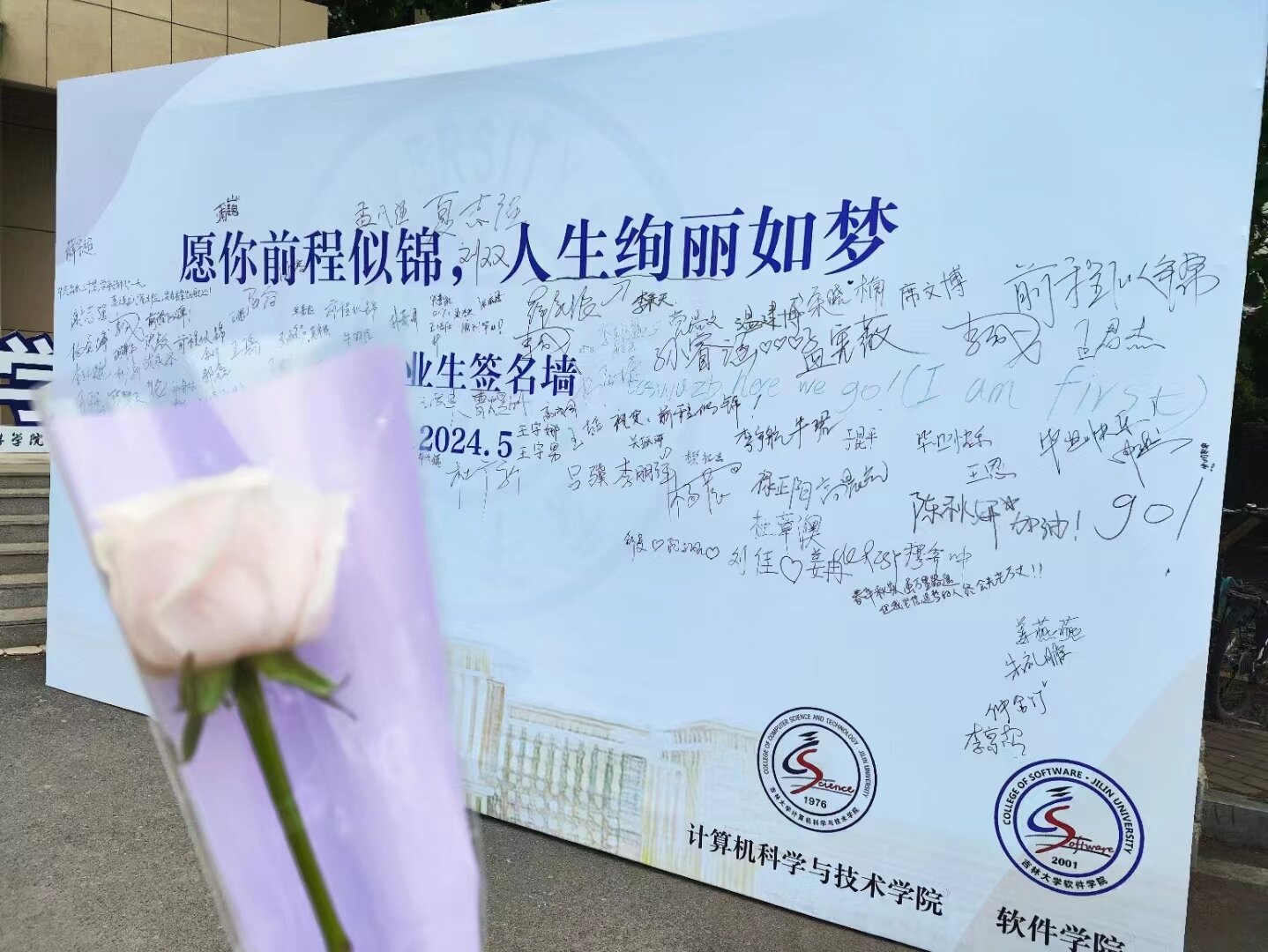此次毕业季活动分为签名墙合影、人生新航程、送你一朵小红花三个活动。活动伊始,公司领导在签名墙前进行签名留念,代表全体公司老师导师表达对毕业生的谆谆教诲和亲切关心。随后,毕业生也纷纷来到签名墙前,或签下姓名表达对母校的不舍与感恩,或留下美好祝福祝愿母校蒸蒸日上,并在签名墙前合影留念,记录下灿烂的毕业时光。