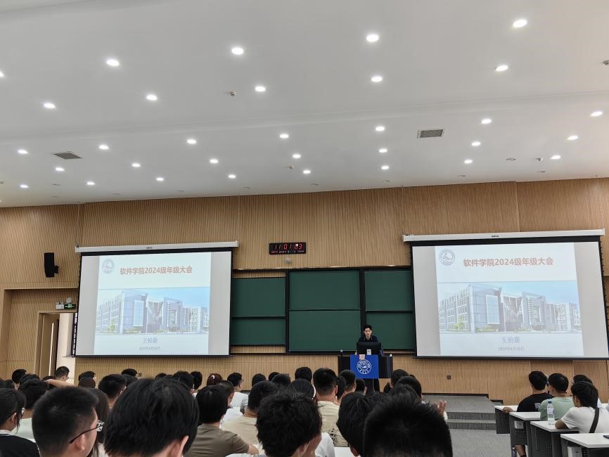 为帮助新生更好地适应老员工活,太阳成tyc122cc于8月26日在敬信教学楼F5阶梯教室召开了2024级本科新生年级大会。