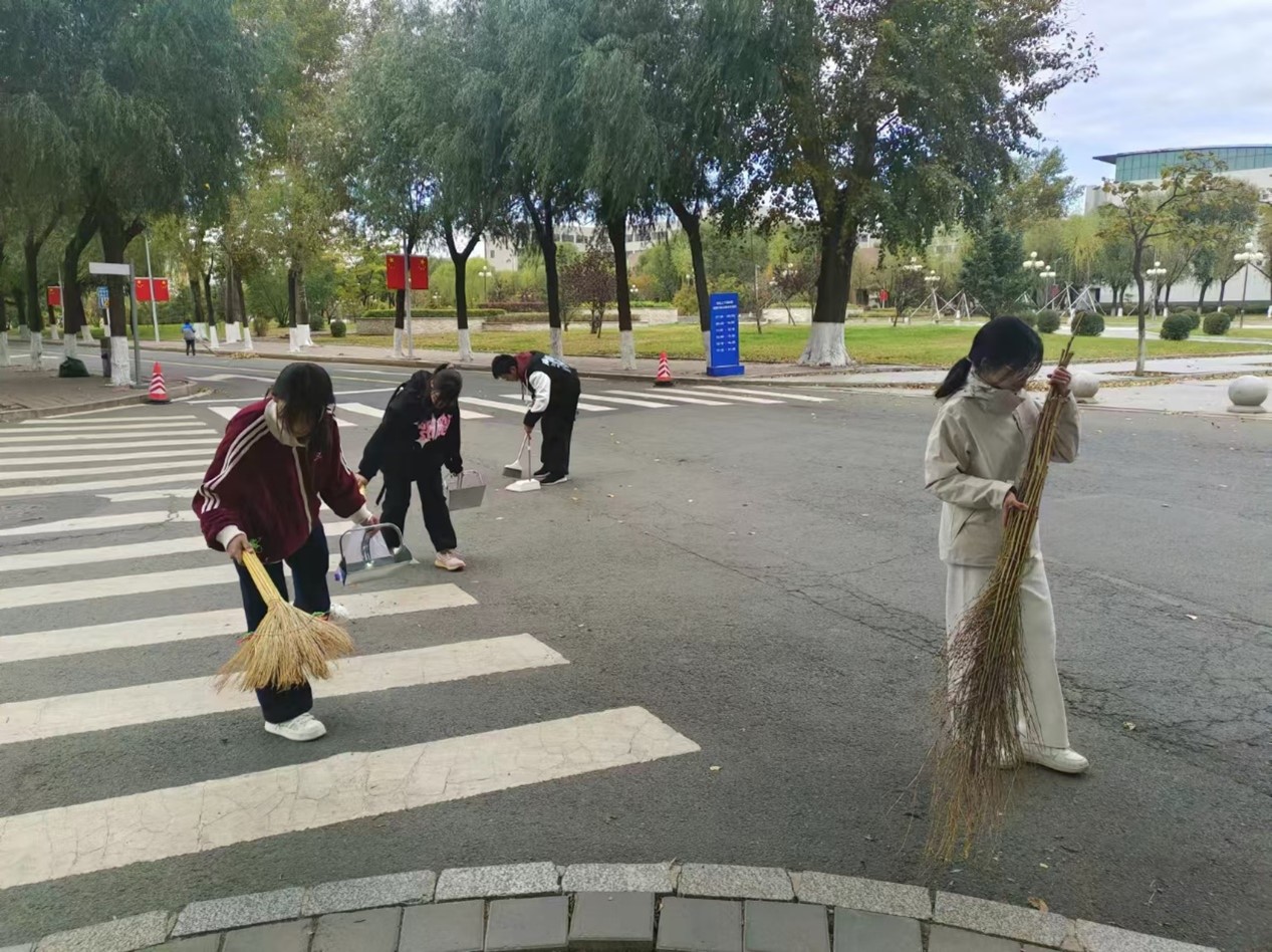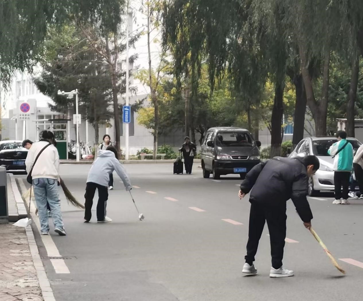 10月1日早晨8点,伴随着清晨的第一缕阳光,活动正式拉开帷幕。太阳成tyc122cc60名同学齐聚宋志平体育馆门前,手持扫帚、簸箕等清洁工具,整装待发。活动分为两队,每队30人,路线围绕校园一周,从宋志平体育馆出发,沿主干道进行落叶清扫,最终在东门汇合。