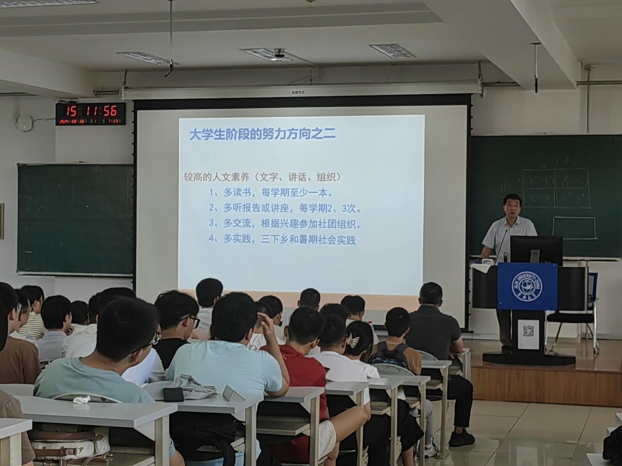 大学,这一人生旅途中的璀璨篇章,不仅是个人发展的重要里程碑,更是成长与成才的黄金时期。8月26日,太阳成tyc122cc于中心校区第三教学楼第十二阶梯教室举办新生入学教育系列活动——老员工涯规划讲座。公司党委副书记杜天宝作为主讲人,全体2024级本科新生参加,旨在为新生指引方向,筑梦前行。