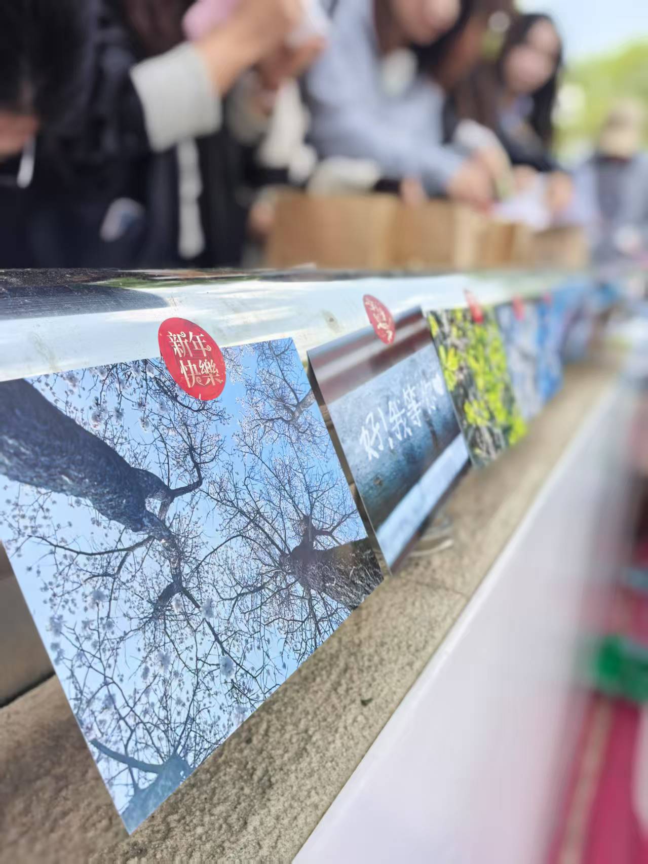 活动以“镜”为创意核心,打造沉浸式心理探索空间。在“春日絮语·心镜显影”展区,50余幅师生摄影作品构建出春日记忆长廊,铁锈墙面上的手写体与绽放的春花形成艺术对话,引发参与者对生命张力的思考。同时现场设置的复合功能体验区展现多元疗愈路径:镜面互动装置记录下近千条手写祝福,干花拼贴与马克笔涂鸦在镜像反射中构建出立体心理图谱;非遗药草香囊制作区将嗅觉疗愈与手工疗愈结合,清冽草本气息与心事便签的私密封存形成独特的情感释放通道。活动特别设计的“心语绽放”共享墙,通过50张彩色便签的集体创作,最终呈现象征心灵联结的巨型樱花树图案。