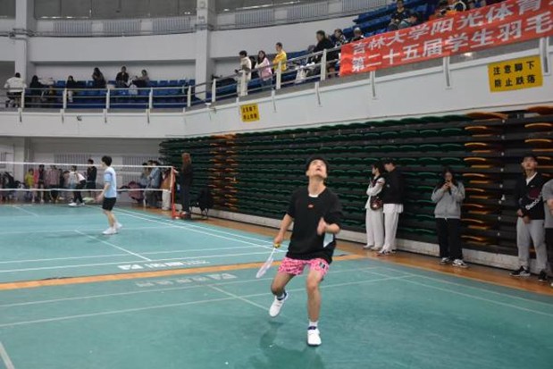 男单赛场同样精彩激烈。6名参赛选手奋勇拼搏,展现出顽强斗志与过硬实力。在八强晋级战中,选手张天翔在决胜局18:20落后的关键时刻沉着冷静,连续两次变线吊球追平比分,并以22:20完成逆转,助力男单队挺进八强。最终,男单团体以积分位列第五,展现了软件学子奋发进取的竞技风采。
