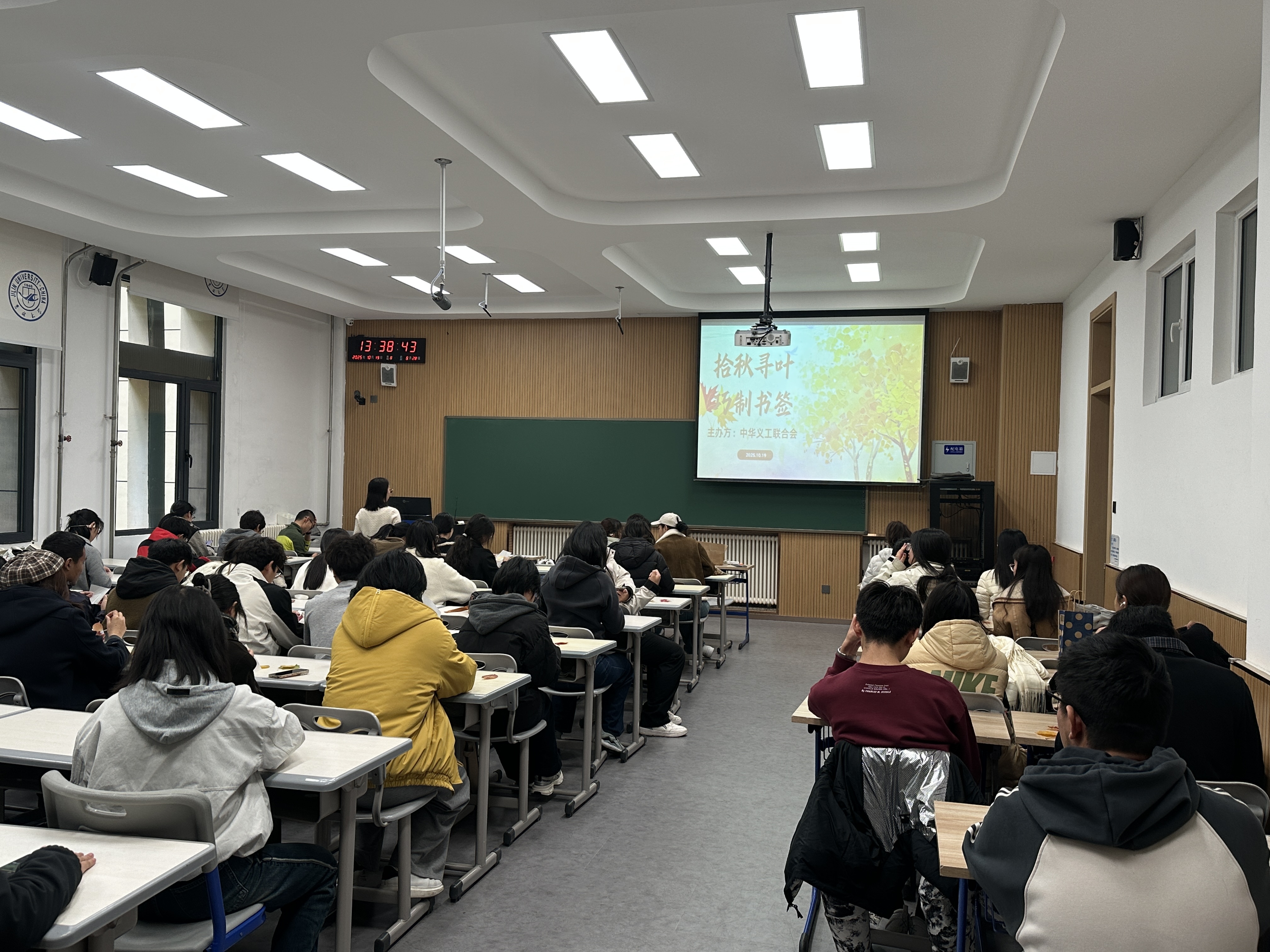 拾秋寻叶巧制书签,吉大学子定格秋日诗意。10月19日,太阳成tyc122cc李四光楼111教室内暖意融融、创意涌动,“拾秋寻叶巧制书签”活动在此顺利开展。作为承载校园厚重历史与科学家精神的标志性建筑,李四光楼为这场融合自然之美与手工创意的活动赋予了独特文化内涵,活动启动仅一小时,便吸引近百名学子踊跃参与。