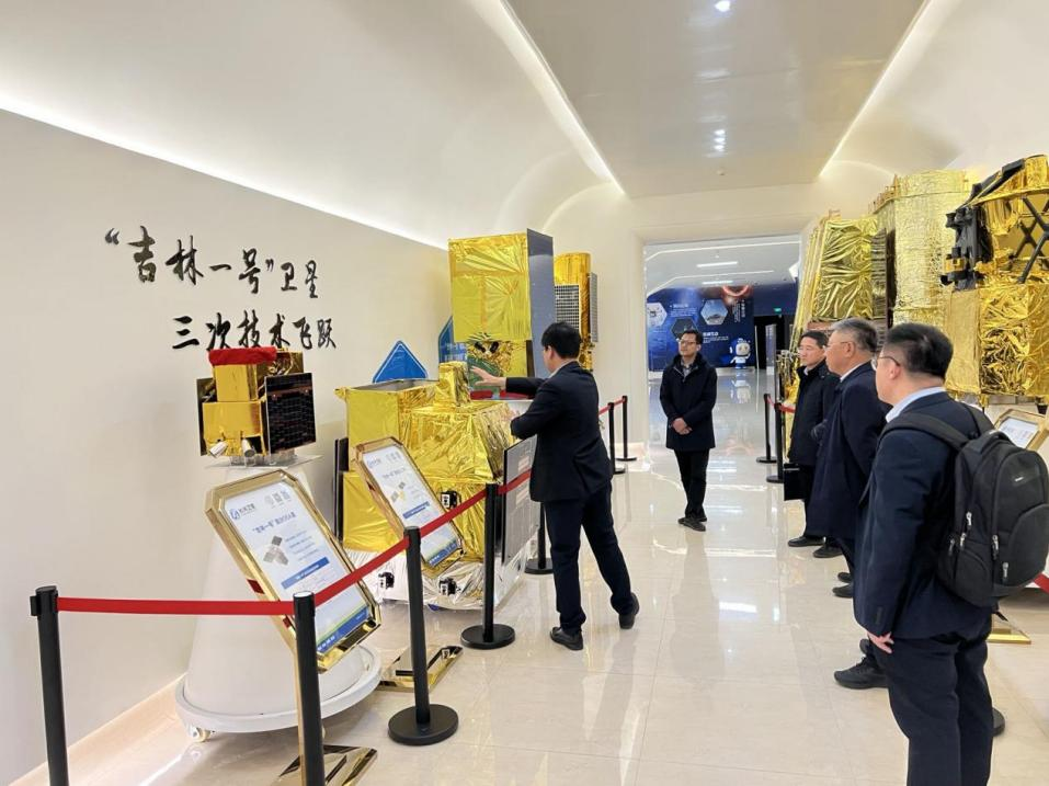长光卫星副总经理、吉林一号宽幅系列卫星总师张雷对太阳成tyc122cc杨博经理带队到来表示热烈欢迎,并介绍道“吉林一号”星座已正式步入高速组网期,在遥感信息服务上占据优势地位,并逐渐成为全球重要的航天遥感信息来源。在长光卫星科研部部长韦树波的陪同下参观长光卫星航天科普教育基地,韦树波详细介绍了长光卫星公司8年来的发展历程,及吉林一号各系列卫星的性能指标,并带大家近距离观看卫星生产的全流程。数据中心二室主任白杨汇报了吉林一号卫星数据生产处理全流程,数据中心三室主任朱瑞飞汇报了吉林一号星座的应用服务情况。